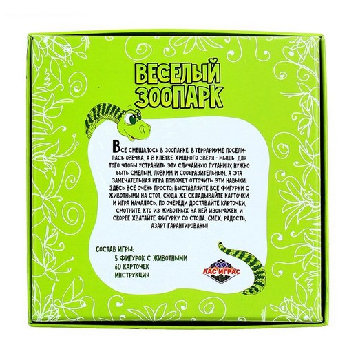Это игра для всей семьи, которая станет отличным способом отлично провести время с родными и близкими. Дети весело играют как вдвоем, так и небольшой компанией (до 6 человек). Если Ваш малыш любит животных, прогулки по зоопарку, то эта яркая и качественная игра, наверняка придётся ему по душе!