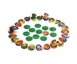 В свой ход игроки переворачивают одну из карточек птичьего двора, стараясь открыть ту картинку, на которой лежит червячок их цвета. Если удалось, курочка или петушок продвигаются вперед. А поскольку бегут они по кругу, рано или поздно их пути пересекутся! Громкое кудахтанье – и вот одной из птиц удалось перепрыгнуть через другую. В награду ей полагается новое прекрасное пёрышко! В настольной игре Цыплячьи бега: Бег по кругу победит первый обладатель 4-х перьев!