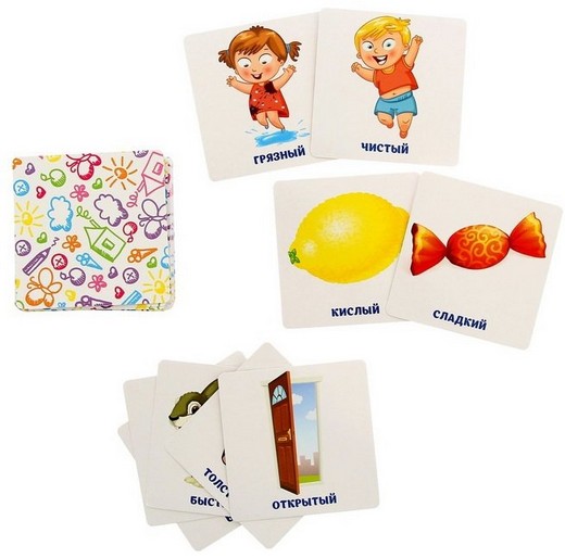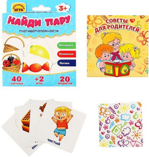 Настольная игра Найди пару антонимы - малыш легко научится находить общие признаки у предметов. И всё это на примере антонимов!