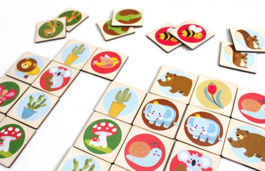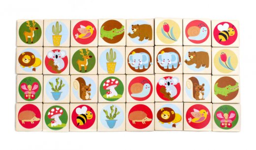 Настольная игра "Мемори" - всемирно известная игра для взрослых и детей для развития памяти. Комплект данного набора состоит из 32 ярких красочных фишек, изготовленных из шлифованной древесины с изображением разнообразных растений и животных.