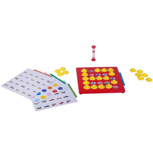 Поместите карточку в игровое поле. Перевернув песочные часы, начинается отсчет времени. В это время игрокам необходимо запомнить как можно больше картинок. По истечении времени, картинки необходимо закрыть крышками. Начните игру с самого младшего игрока.