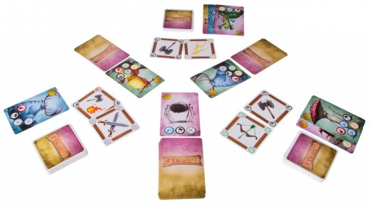 Перемешайте все карты оружия и заклинаний и разделите их на несколько стопок по количеству игроков. Стопки должны быть примерно одинаковыми, но количество карт не так важно, поэтому точно отсчитывать карты не обязательно. Каждый игрок получает по стопке и кладет ее лицом вниз перед собой.