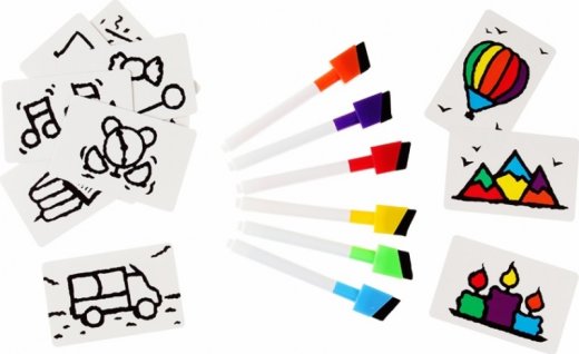 Вы должны будете раскрасить свою карточку специальными маркерами (входят в комплект) быстрее соперников, при этом не перепутать цвета и не заступить за линии рисунка. А это нелегко, когда противники постоянно дышат вам в спину! Слишком легко? Подождите, на следующем уровне колпачки у маркеров поменяются местами, и выбрать нужный цвет станет намного сложнее. А если учесть, что вы можете брать каждый маркер всего один раз за ход… В общем, будет весело! И да, не переживайте за "испорченные" карточки – маркеры прекрасно стираются с них при помощи специальных колпачков.