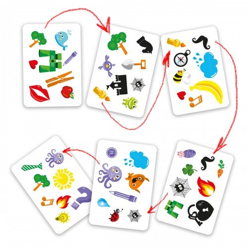 Каждый игрок должен найти изображение, совпадающее на карте любого другого игрока с рисунком на карте в колоде.