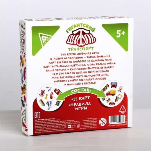 Купить настольную игру "Гигантский дубль. Транспорт" в Новосибирске Вы можете в магазине настольных и развивающих игр "Игры Почемучек"