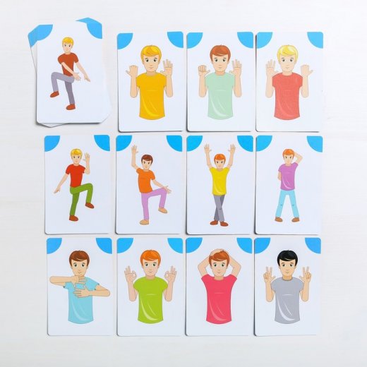 Перед вами занимательная игра, в которой участникам предстоит повторять позы или положение рук, нарисованные на карточках. А сделать это не так просто, поэтому нужно быть очень внимательным и быстрым!