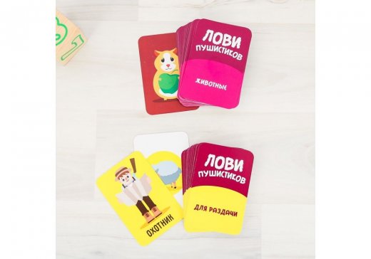 В этой игре каждый участник сможет побыть ведущим, который раздаёт карточки с животными из 4 цветных колод.