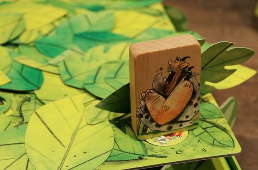 Игровое поле6 здесь сама коробка игры. Из нее получается целый дремучий лес. В специальные отверстия на поле помещают фишки чертят и накрывают их большим количеством зеленых листьев (они как настоящие!).