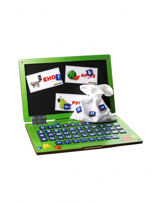 Ноутбук – это удивительная игрушка для знакомства с алфавитом и математическими знаками. Игрушка представляет собой конструкцию в виде переносного персонального компьютера, имеет дисплей – магнитную доску и клавиатуру с вкладышами – кнопками. С ноутбуком ребенок с удовольствием научится работать по образцу, сортировать, сравнивать и анализировать, складывать слоги, составлять слова. Игры и занятия с Ноутбуком развивают мышление, память, воображение, зрительное и тактильное восприятие, стимулируют мелкую моторику и координацию движения, формируют любознательность и самостоятельность. Ноутбук поможет разнообразить досуг ребенка и подарит массу положительных эмоций.