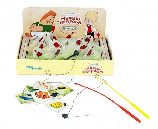 Настольная игра Малыш и Карлсон - трехмерный вариант классической игры "Мемори". Попробуйте запомнить разноцветных и разных по форе рыбок, а затем поймать их! Игра способствует развитию внимания, памяти, реакции.