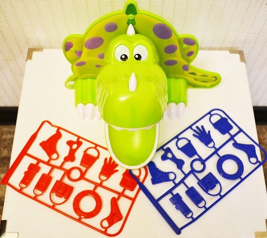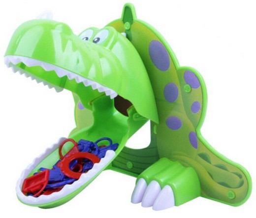 Чтобы вытащить предметы из пасти динозавра, потребуется проявить ловкость и аккуратность. При помощи крючка нужно настолько осторожно вынимать по одному предмету, чтобы случайно не выпал ни один из них. Более того - ни в коем случае нельзя касаться зубов динозаврика, иначе его пасть тут же захлопнется и сражение проиграно.