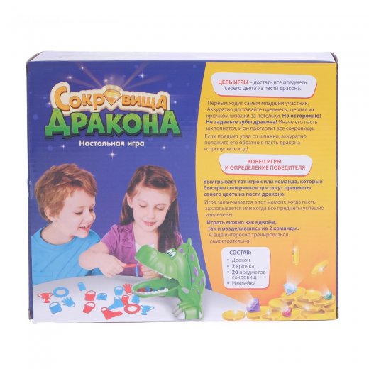 Первым ходит самый младший участник. Аккуратно доставайте предметы, цепляя их крючком шпажки за петельки. Но осторожно! Не заденьте зубы дракона! Иначе его пасть захлопнется, и он проглотит все сокровища.