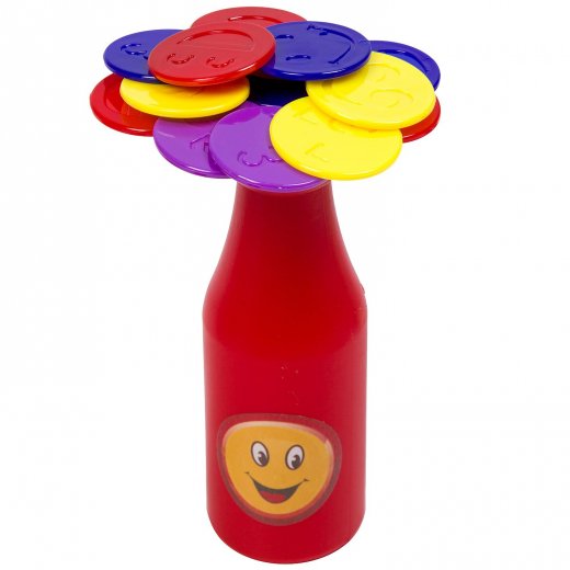 Бутылка является главным центром игры. Игру начинает самый младший игрок, взяв круглую фишку, он ставит ее на бутылку (основу) и передает ход другому игроку.