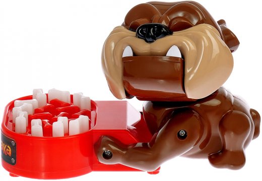 Эта игра покажет, кто самый удачливый! Поверните голову бульдога, чтобы он сел. По очереди с соперниками нажимайте на косточки в его миске. Среди всех косточек есть одна ловушка – нажмете на нее, и бульдог попытается схватить вас за палец! На кого бульдог набросился, тот и проиграл! Ловушка каждый раз в разной косточке.