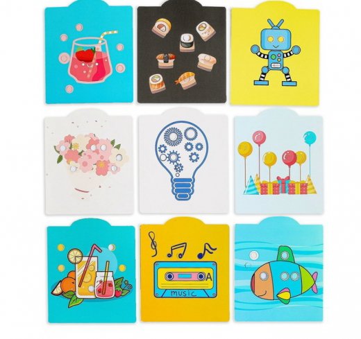 В наборе 10 сменных карточек, которые вставляются в игровое поле, тем самым игрушка очень долго будет интересна ребенку.