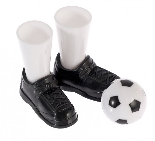 А сама игра проходит еще интересней. Противников всего двое, они облачаются в экипировку, которая также имеется в комплекте. Это бутсы с носками разных цветов. Они идеально надеваются на средний и указательный пальцы.
