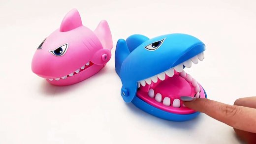 Осторожно! Акула "кусает за руку". Суть игры в том, что игроки по очереди нажимают на зубы открытого рта акулы, тот игрок, на чьем зубе акула сомкнула челюсть "выбывает", побеждает тот, кто остаётся последним.