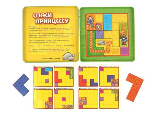 Расположить ВСЕ магнитные пластинки на доске так, чтобы МАК и ЗАК смогли спасти принцессу от дракона.