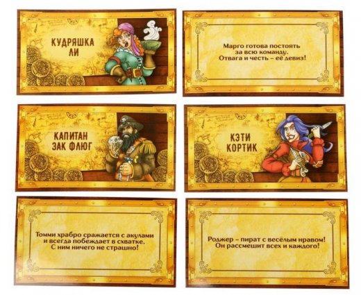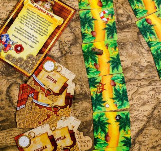 Сундук закопан где-то на острове, и у каждой группы свой путь до этого места. Кто доберётся до него раньше, получит фору в звании лучшей команды пиратов. В свой ход один пират от команды переворачивает карточку дорожки и пытается устно объяснить написанное. Называть само слово и однокоренные нельзя. Как только одна из команд доберётся до сундука, сокровища считаются захваченными. Затем начинается второй раунд. Теперь игрокам предстоит вытягивать карточки из сундука и объяснять их при помощи пантомимы и рисунка. Группа, отгадавшая больше слов, окажется самой сильной и отважной командой пиратов!