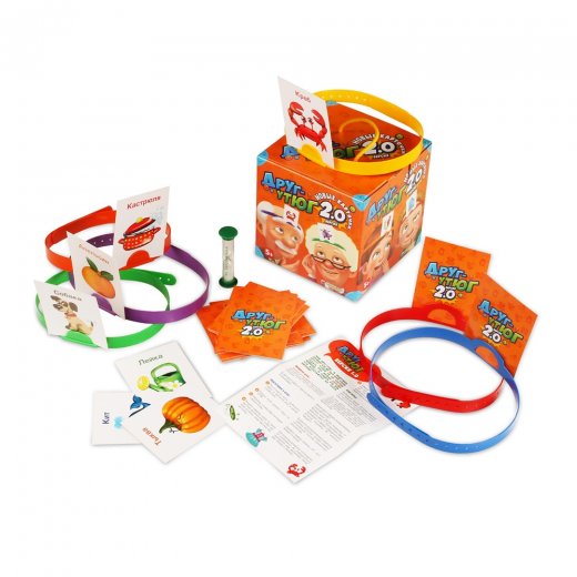 Состав игры: 70 игровых карточек, 6 обручей на голову, песочные часы, правила игры.