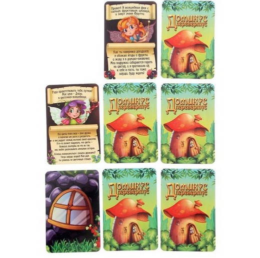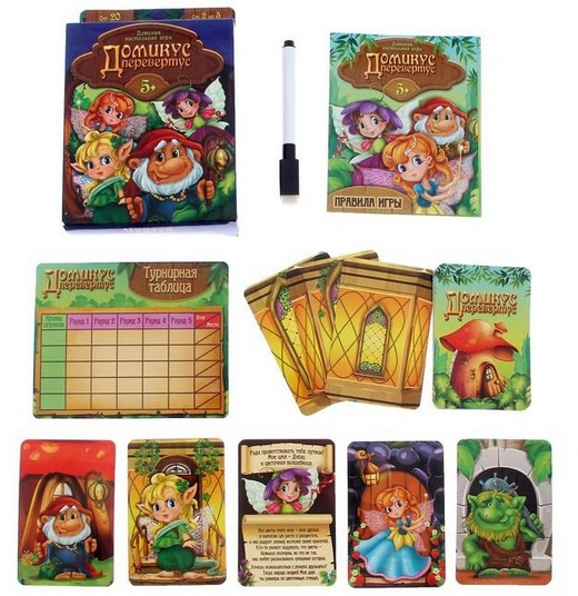 Каждый участник получает своего персонажа и карты с перепутанными частями домиков. Чтобы построить целый дом, игрок должен собрать у себя 5 карточек с частями жилища своего персонажа. Но это еще не все! Нужно выстроить все этажи по порядку. Игрокам необходимо меняться картами, чтобы что – то построить. Посмотреть, что скрывается за «рубашкой», можно только в самом начале. А победит тот, кто быстрее всех соберёт домик. Ведите подсчёт очков в специальной таблице. Она многоразовая.