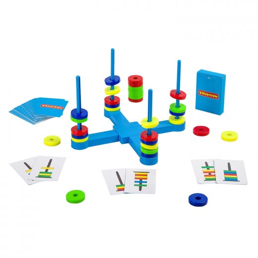 Разложите элементы игры в центре стола. Карты необходимо перетасовать и положить колодой картинкой вниз. Каждый игрок получает по 8 колец (каждого цвета по 2 шт.).