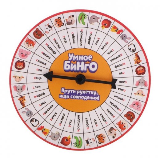 Крутите рулетки в каждой игре и озвучивайте выпавшие значения. Кто первым закроет 4 фигуры в ряду на карточках и крикнет «Бинго!», тот и становится победителем!