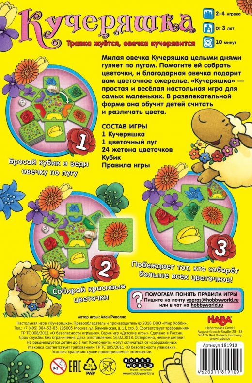 Рекомендуемый возраст: от 3 лет. Количество участников: от 2 до 4 игроков.