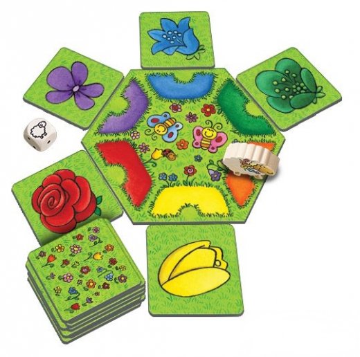 В центре стола находится игровое поле, которое изображает зелёный цветочный луг. Луг делится на шесть зон, в которых может находиться деревянная фигурка Кучеряшки. Зоны отличаются по цветам: присутствуют все цвета радуги, кроме голубого. Рядом с этими зонами кладутся жетоны соответствующих цветов, которые игроки будут забирать в качестве награды. В начале игры это всего лишь два жетона. Игровой процесс очень простой.