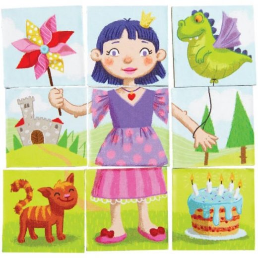 3. Картинки на квадратах в вашем пазле могут относиться к разным исходным рисункам. Например, после присоединения квадратов платье может получиться разных цветов.