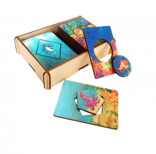 Доска Сегена (Seguin Form Board) - методика исследования уровня умственного развития детей, предложена Э. Сегеном в 1866 году. Досочки Сегена Морские обитатели - это игра, по смыслу напоминающая методику известного педагога, но измененная и адаптированная для нашего времени. Рамки – вкладыши представляют собой деревянные дощечки с выемками для геометрических фигур. Ребенку предлагается вставить геометрические фигуры в прорези планшетов. Игра усложняется разными цветами - фигурку нужно вложить, учитывая цвет.