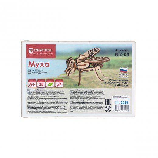 Сборная деревянная модель Муха 28 дет - в каждый набор входит пошаговая инструкция на русском языке.