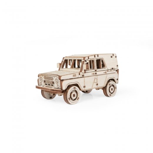 Деревянный конструктор и сборная модель из дерева Автомобиль Внедорожник "Алькор" от фабрики деревянной игрушки «Леммо» для детей и взрослых. Все детали выполнены из качественной древесины и имеют сильный насыщенный запах дерева. Готовы к сборке. Детали находятся на специальных плашках и необходимо только выдавить пальцем нужную деталь.