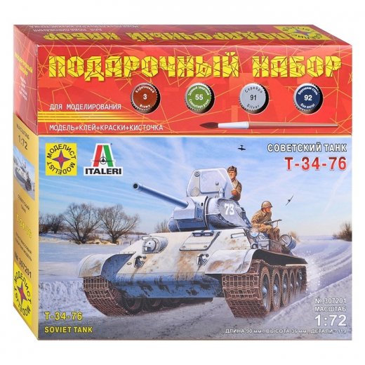 Сборная модель Советский танк Т-34-76 Моделист ПН307201 - превосходный подарок для юного любителя военной техники. Создание советского танка Т-34 стало тяжелым ударом для германской армии. На 1941 г. он превосходил любой танк, состоявший на вооружении германской армии. Т-34 выпускались тысячами – общее число выпущенных в 1940—1945 гг. превышает 40 000.