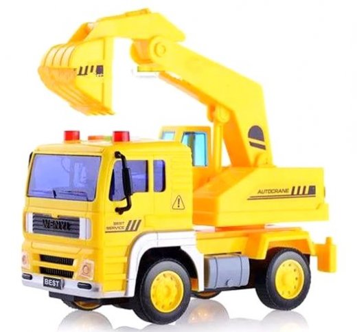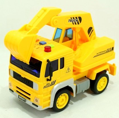 Машина с экскаватором – это замечательный подарок для юного строителя и любителя машин. Строительная техника с подвижными элементами, фрикционным механизмом, со звуком и светом. Кнопки расположены на крыше кабины. Издает Звук заводящегося двигателя, автомобильный сигнал. Звук автомобильного сигнала. Тревожный сигнал, пищащий звук. Одновременно мигают 2 красных лампы на крыше авто. В нижнем положении кузов фиксируется. Кузов поднимается вверх нажатием на кнопку сбоку и задний борт открывается, все как у настоящих машин.