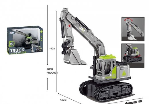 Экскаватор пластиковый. Имеет подвижные детали: вращающаяся кабина, гусеницы, движущийся ковш. Гусеницы изготовлены из качественной резины. Игрушка отлично подойдет для веселых игр и понравится ребенку.