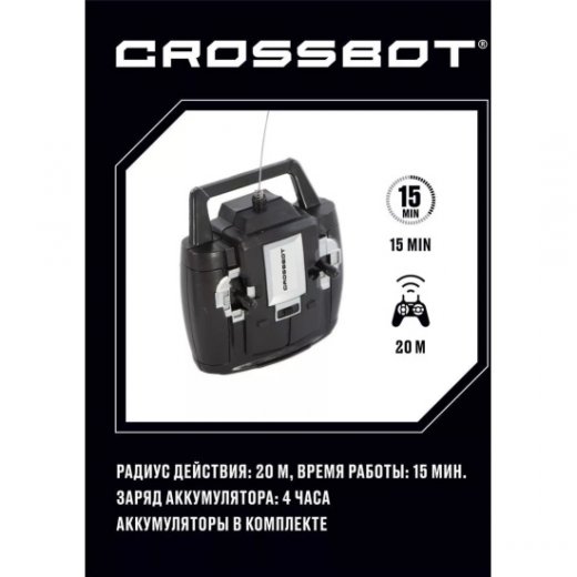 Джип с радиоуправлением, задний привод, развивает скорость 10 км/ч и может двигаться во всех направлениях. Резиновые шины, пружинные амортизаторы.