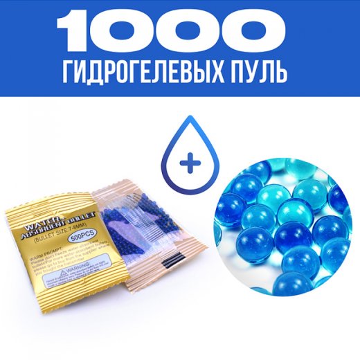 Пушка стреляет водными шариками (в комплекте 1000 штук).