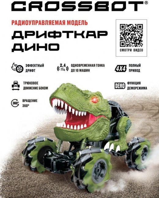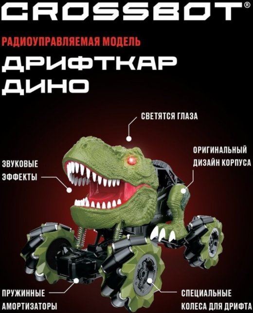 Машина на радиоуправлении Crossbot 870844 Дрифткар Дино свет и звук