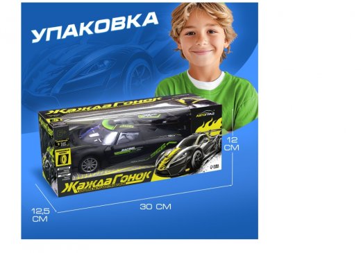 Машинка на радиоуправлении «Жажда скорости» приятно удивит ребёнка и порадует его стильным дизайном. Игрушка развивает скорость до 10 км/ч, легко справляется с поворотами и препятствиями, поэтому вы сможете устраивать захватывающие гонки дома или на улице.