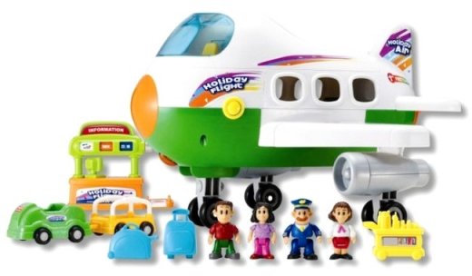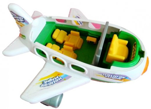 Самолет Holliday Flight перенесет Вашего малыша в чудесное путешествие. Путешествие начинается с регистрационной стойки, на стойке установлен компьютер, 3 секции табло указывают направление полетов, данные табло меняются легким поворотом ручки. За стойкой Вас встречает стюардесса. После этого путешественники садятся в самолет, а багаж на погрузочной тележке прикрепленной к машине отправляется к самолету. Хранится багаж в специальном грузовом отсеке. В самолете за пультом управления сидит настоящий летчик в костюме, фуражке.