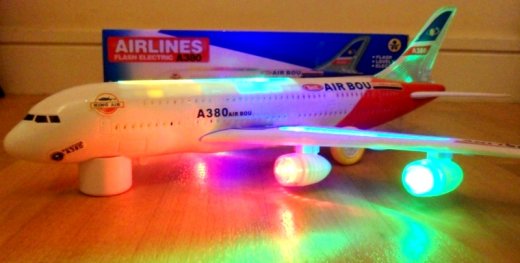 Самолет со звуковым эффектом – это великолепный подарок для юного авиа любителя. Почти каждый мальчишка в детстве мечтает стать пилотом. Что может быть интересней и увлекательней, чем летать как птица среди облаков и управлять огромным красивым самолетом с пассажирами на борту. Игрушечный самолёт выполнен из качественного пластика и станет отличным подарком для Вашего сынишки. Световые и звуковые эффекты игрушки придадут развлечению особый колорит и натуральность.