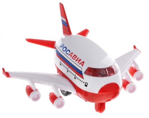 Самолет инерционный - немного откатите его назад и отпустите, после этого он будет сам катится вперед, как будто по взлетной полосе. Настоящая радость для ребенка, особенно если он неравнодушен к технике. Небольшой размер игрушки и ее форма делают игру с ней особенно удобной для ребенка (самолет идеально ложится в руку), а разнообразные эффекты добавляют игре интереса.