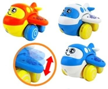 Инерционный самолетик с намалеванной на нем рожицей выполнен в мультяшном стиле. Игрушка оснащена инерционным механизмом. Это значит, что если откатить ее чуть назад, а потом отпустить, она поедет вперед. Изделие выполнено из безопасного для ребенка пластика. При помощи нескольких таких самолетиков ваши дети смогут устроить настоящие соревнования.