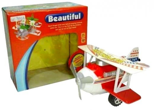 Симпатичный маленький самолетик - биплан оснащен инерционным механизмом. Чтобы привести его в движение и увидеть, как весело закрутятся лопасти пропеллера, достаточно откатить игрушку назад. Самолет набирает ход, и, кажется, что еще немного - и он взлетит. Самолетик выполнен очень качественно, похож на настоящий, но при этом имеет достаточно ''детский'' дизайн. Для юного любителя самолетиков эта игрушка станет поводом для придумывания множества веселых и увлекательных игр. Когда самолет движется вперед после активации инерционного механизма, его пропеллер крутится автоматически.