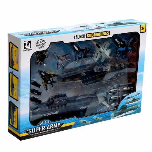- Подводная лодка (инерционная, на колёсиках): 29 × 7 × 9 см.