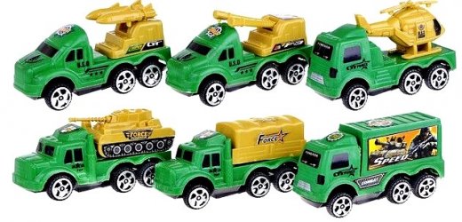 Все игрушки в наборе хорошо проработаны и детализированы, они выглядят очень реалистично. В комплект входят 12 видов боевой техники. Каждая модель изготовлена из качественных и прочных материалов, абсолютно безопасных для здоровья детей. Техника окрашена в специальный маскировочный, военный цвет, чтобы противнику сложнее было заметить транспорт. Набор станет отличным подарком не только для мальчика, но и для взрослого любителя коллекционировать различные модели транспорта.