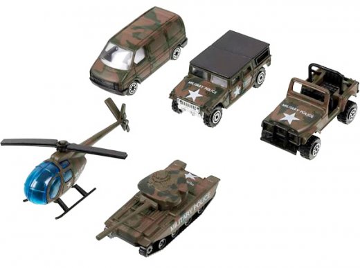 Состав набора: 1 вертолет, 1 танк, 3 военные машины.