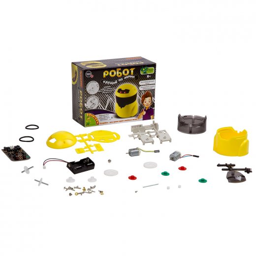 Собрать забавного и послушного робота, который будет идти по нарисованному ребенком пути - что может быть увлекательнее? Если Вашему юному гению уже исполнилось 8 лет, для него не составит труда справиться с этой задачей! В наборе все детали для сборки робота, а также светочувствительные элементы, датчики освещенности, мигающие светодиоды, батарейный модуль и конечно же подробная красочная инструкция!