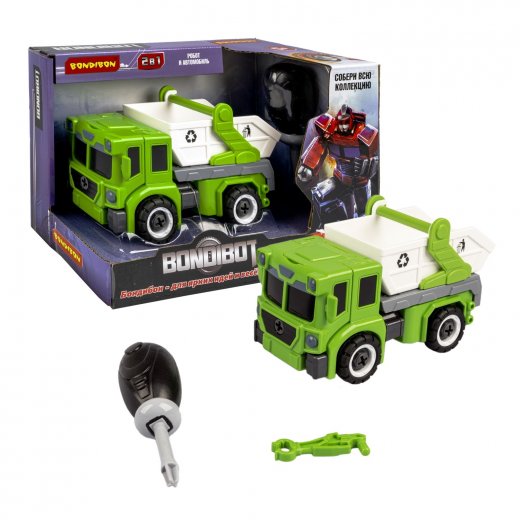 Купить Трансформер - конструктор с отвёрткой, 2в1 BONDIBOT, контейнерный мусоровоз - робот в Новосибирске Вы можете в магазине настольных и развивающих игр "Игры Почемучек"